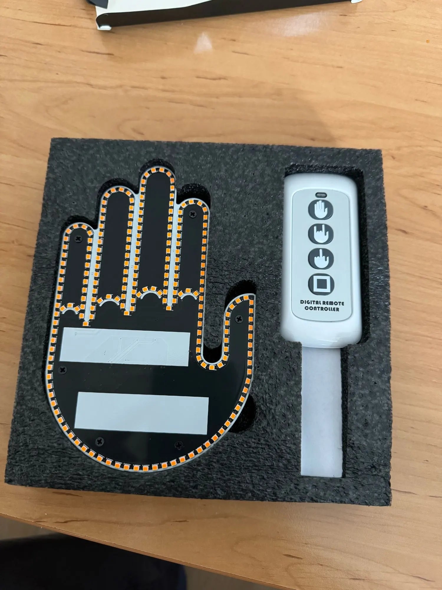 3 LED gestures are available, a middle finger, an open hand as a "thank you", and a "rock" gesture.